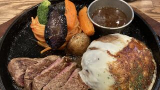 北海道 【函館】肉質抜群・荒挽きハンバーグと豪快ステーキを鉄板で堪能【ステーキ&ハンバーグひげ】 観光客からも人気、函館駅前にあるステーキ&ハンバーグのひげ。近くに立体駐車場あり。席はカウンター、ソファ席あり。トイレは2階。プレートに彩り豊かな野菜も添えられている。黒毛和牛が人気の商品。他に牛肉は横隔膜、リブアイ、手羽の3種から選択。 2025.10.02 北海道