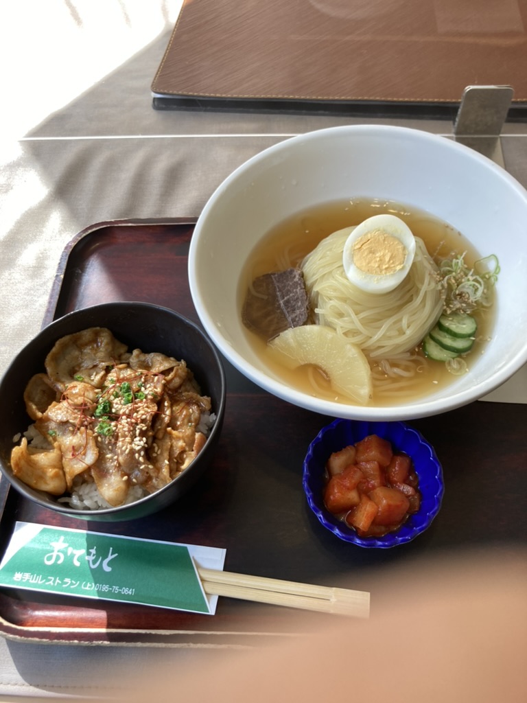 盛岡といえば冷麺ですよね。焼肉丼とセットでとても満足です。