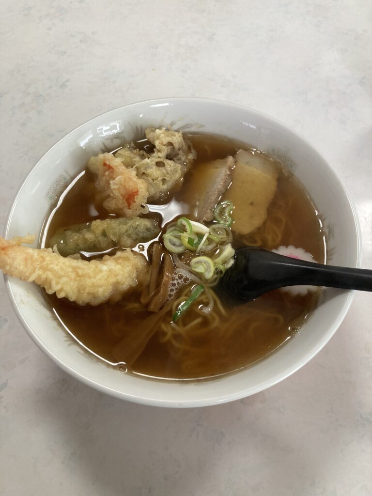 ラーメンと天ぷらの組み合わせは珍しく、地元でも人気のメニューとなっています。