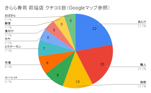 Googleマップでのクチコミを見たところ、様々なキーワードが出現しておりました。