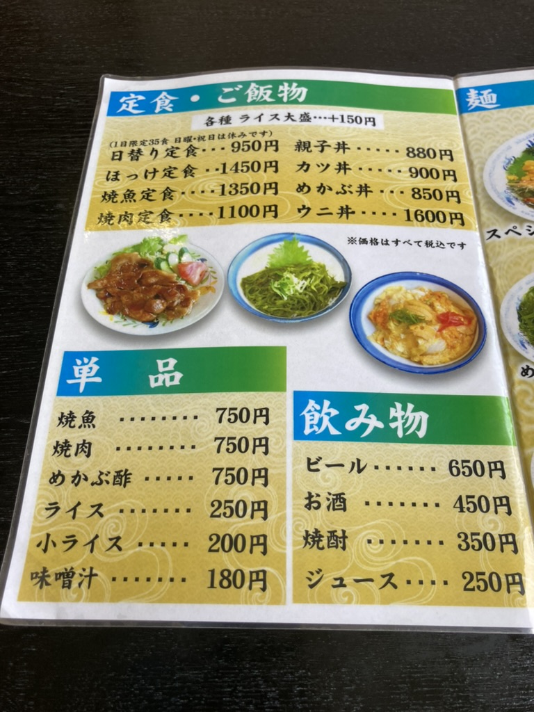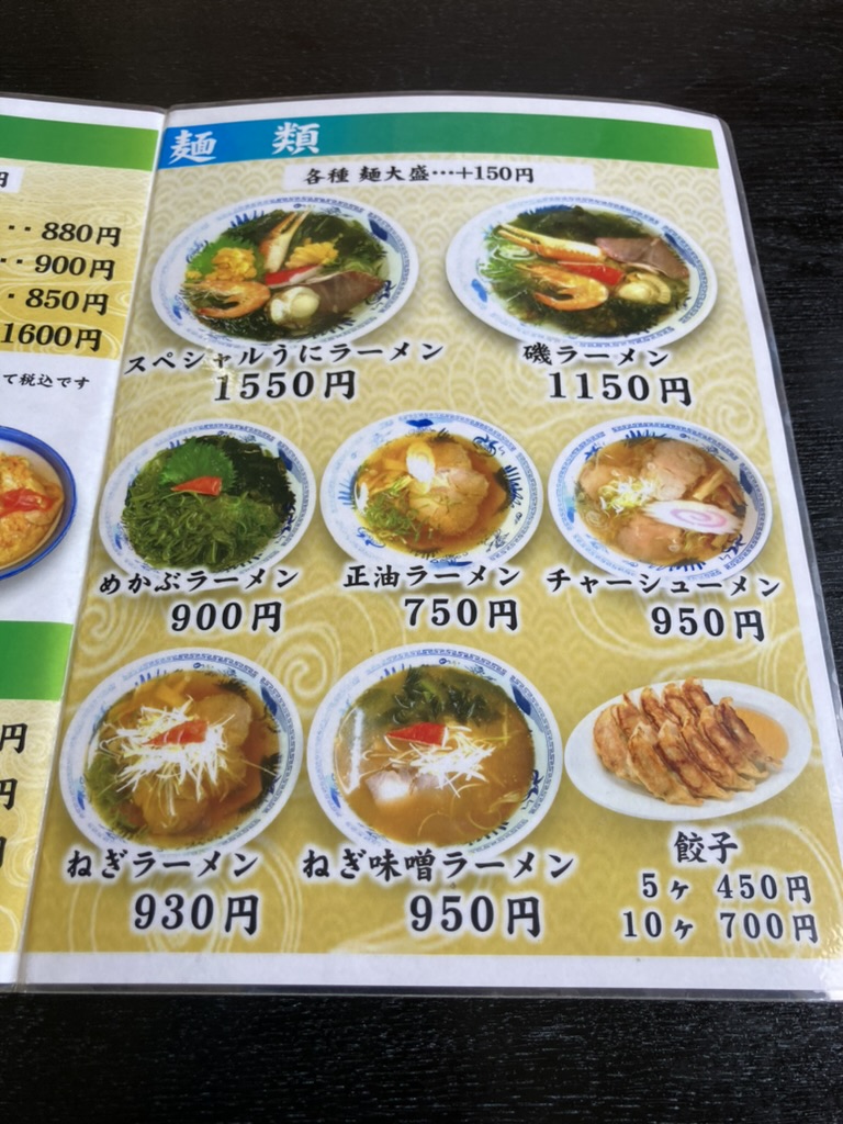 磯ラーメン・うに丼などの名物メニューから日替わり定食・焼魚まで、懐かしいながらも飽きないラインナップが光ります。