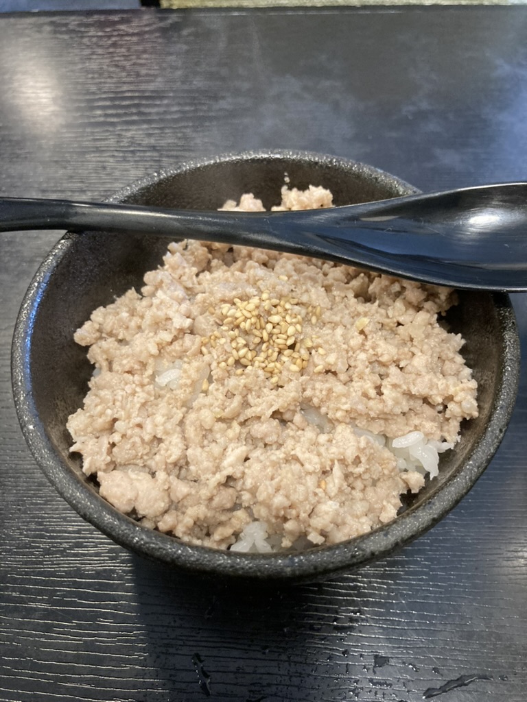 ライスと餃子のランチセットも魅力でしたが、今回はサイドメニューの「ひき肉丼」(250円)にしてみました。