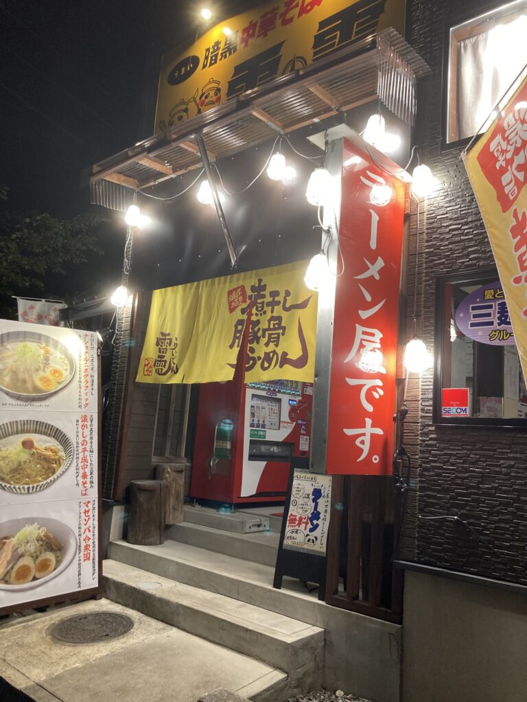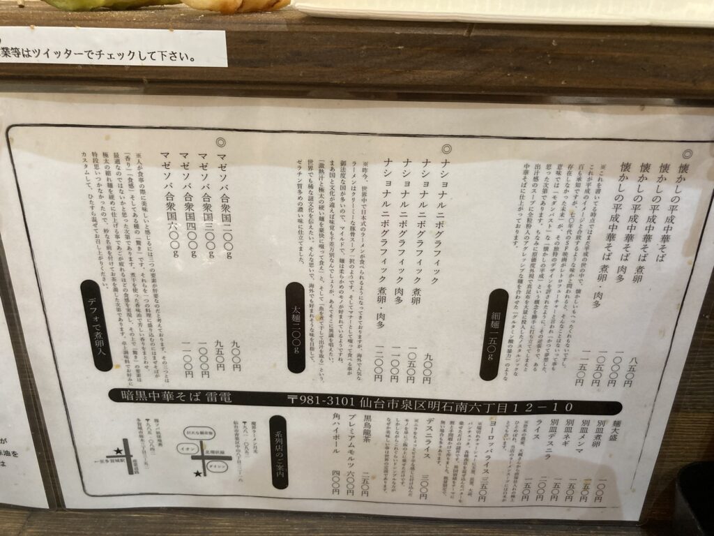 泉区明石南にある「暗黒中華そば 雷電」は、ラーメン好きの間で注目される「魔界ラーメン月光」の姉妹店として、2019年4月にオープン。