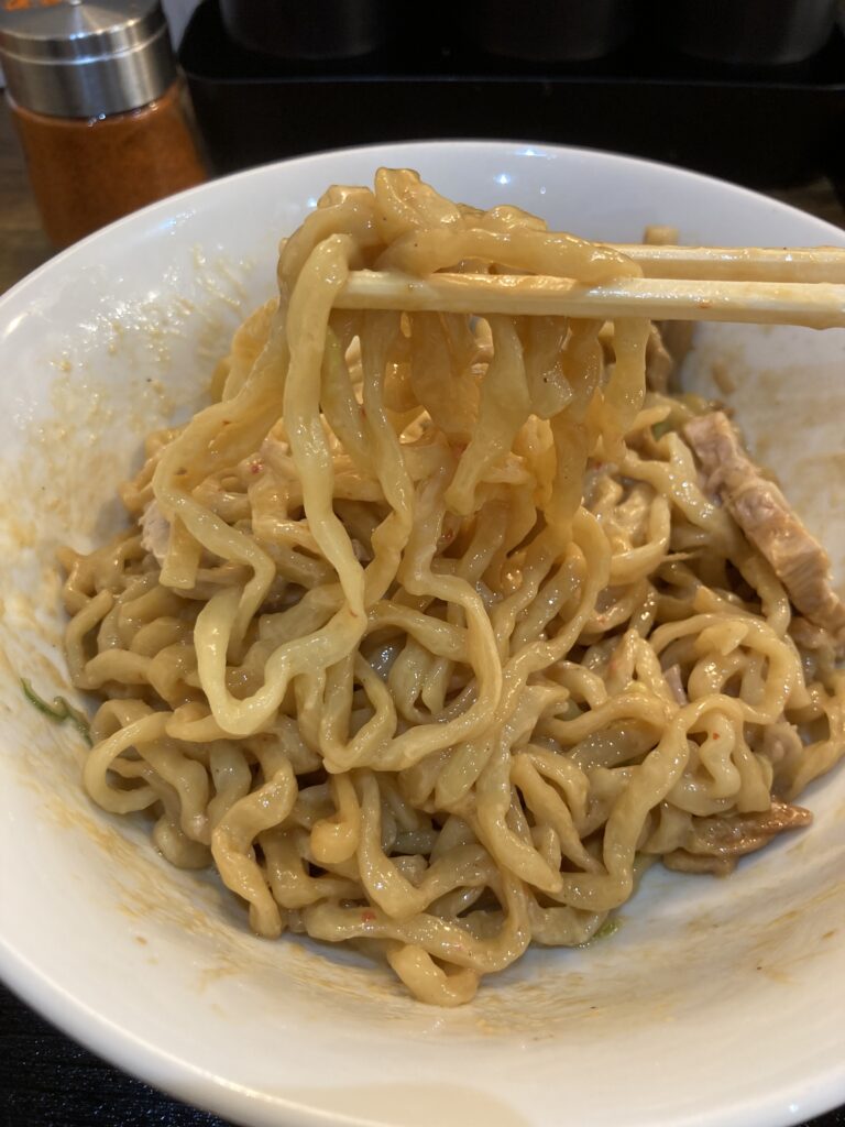 まぜそばは、とにかく熱いうちに混ぜると学んだので、かき混ぜてみました。