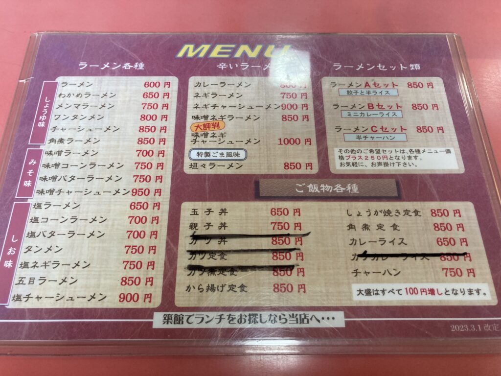 麺メニューに関してはしょうゆ味の「ラーメン」(600円)を選択しました。