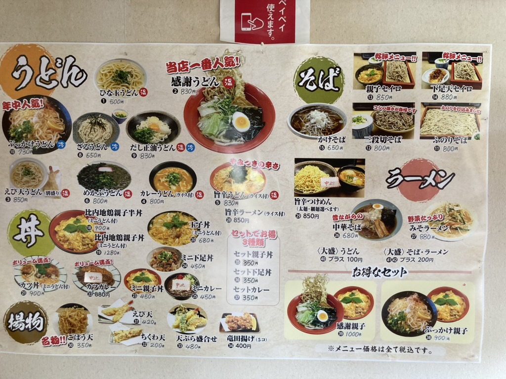 平泉駅近くという便利さに加えて、うどん/親子丼/みそラーメンなど多彩なメニューが楽しめるのが強み。