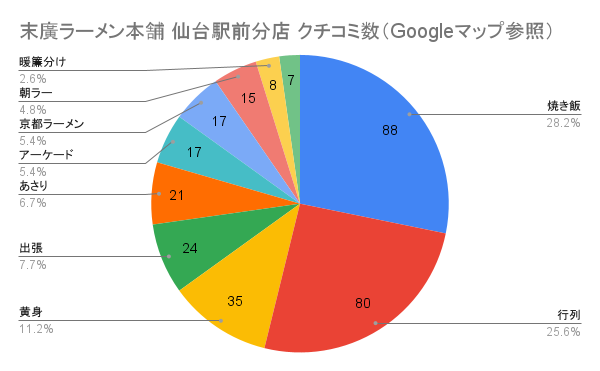 Googleマップでのクチコミを見たところ、様々なキーワードが出現しておりました。