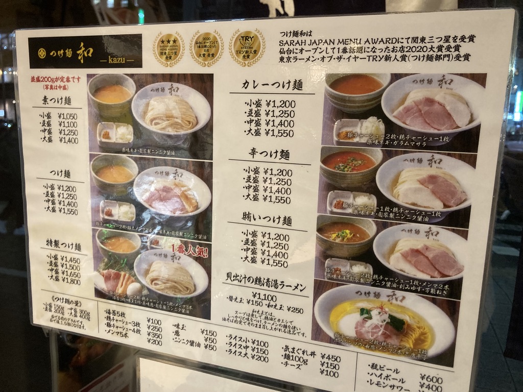 東京発の有名店「つけ麺 和」の2号店として、仙台駅から徒歩圏の広瀬通沿いに2020年にオープン。