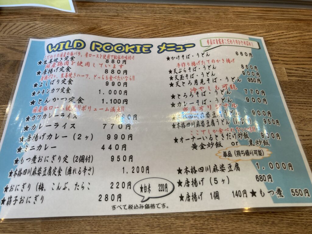 宮城県登米市南方町堤田にある「WILD ROOKIE(ワイルドルーキー)」は、定食・中華・居酒屋メニューを幅広く提供する新進気鋭の食堂。