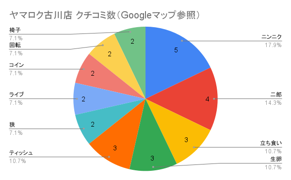 Googleマップでのクチコミを見たところ、様々なキーワードが出現しておりました。